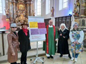 Es war eine klare Ansage gleich zu Beginn des Familiengottesdienstes: Es werde heute alles andere als lustig werden, meinten der Richter, der Cowboy und der Detektiv vorne am Altar – und das am Faschingssonntag! Dann stellten die drei strengen Herren ihre Regeln auf, die alle Gottesdienstbesucher einzuhalten hätten: „Du sollst jeden Sonntag in die Kirche gehen“; „Du musst immer brav sein“; „Du musst immer fleißig sein“ – und so weiter. „So viele Regeln – ich weiß gar nicht, ob ich das alles hinbekomme?“, fragte sich von den Kirchenbesuchern bestimmt nicht nur Valerie. Damit sollte das Thema Regeln aber noch nicht beendet sein: Im Evangelium ging es um die Gesetze der Propheten. Jesus machte den Menschen klar: Was im Gesetzbuch steht, ist nur die Pflicht. Jesus will aber die Kür: Die Gesetze sollen nicht nur erfüllt, sondern sogar überstiegen werden. Wenn also im Gesetzbuch steht: „Lügen und schwören sind verboten“, dann sagt Jesus: „Ihr soll immer ehrlich sein: Ihr sollt in Euren Herzen ehrlich denken.“ Die Mitglieder des Familiengottesdienst-Teams verdeutlichten das anhand von drei kurzen Szenen, mit denen sie verdeutlichten, dass es nicht nur um die Einhaltung von Regeln geht – anders also, als Cowboy, Richter und Detektiv anfangs behauptet hatten. Zum Beispiel, als Vevi herumhetzt, noch alles Mögliche erledigen muss, und bei all dem Stress auch noch der Gottesdienstbesuch ansteht. Da bietet ihr Christina an, mit ihr zu reden und meint, ob es nicht besser sei, entspannt und mit offenem Herzen in die Kirche zu gehen, statt einfach nur zu gehen, weil es sich „gehört“? Pfarrer Thomas Winderl verdeutlichte diese Überlegungen noch einmal in seiner Predigt. Es gehe nicht darum, eine Art „Strichliste“ zu führen, mit Dingen, die jeder erledigt, mit Regeln, die jeder eingehalten habe. Es gehe um die „größere Gerechtigkeit“, wie es Jesus nenne. „Es reicht nicht, nicht zu lügen, sondern: Das, was ich sage, und das, was in mir drinnen ist, soll zusammenpassen.“ Gott traue jedem von uns zu, dass er seinen Beitrag leisten könne, dass hier auf dieser Welt ein Stück weit mehr Himmel sei. „Probier‘ das Bestmögliche aus – nicht aus Angst vor den Regeln, sondern aus Liebe.“ Die jetzt beginnende Fastenzeit könne dazu genutzt werden, zu prüfen, wo es bei jedem von uns noch nicht so ganz passe, damit das Stückchen Himmel auf Erden möglich sei.
